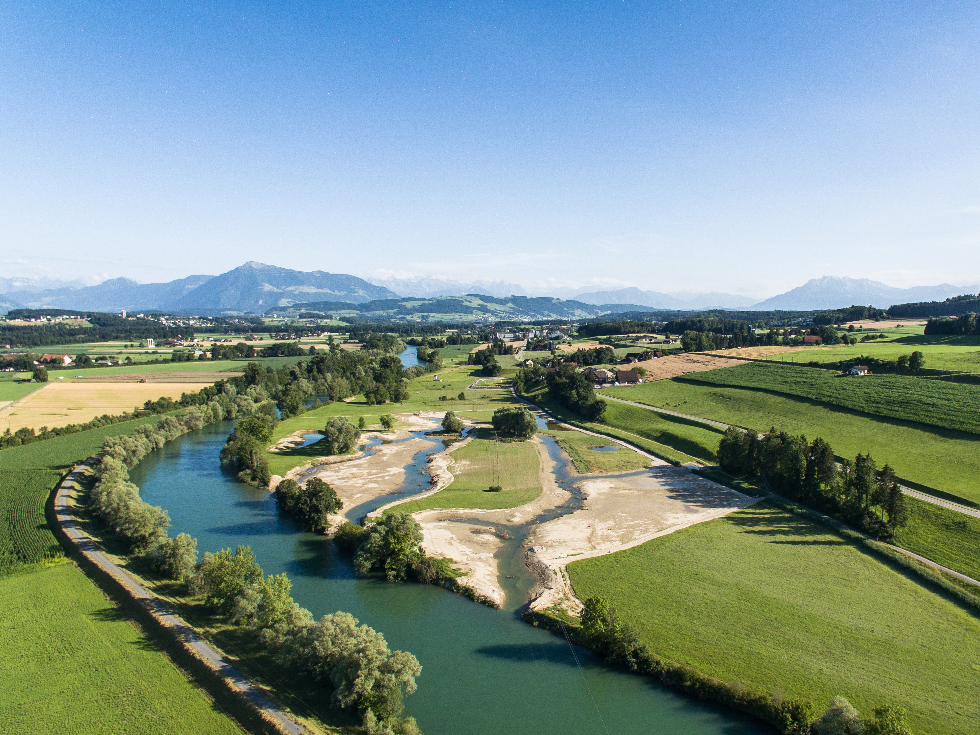 Im Ortsteil Reussegg der Gemeinde Sins entstand auf einer Fläche von rund 20 Hektaren ein neues Auengebiet mit drei neuen Seitenarmen der Reuss. Das Gelände wurde neu modelliert, damit wertvolle Lebensräume wie Überschwemmungsflächen und Pfeifengraswiesen, aber ebenso Trockenstandorte neu entstehen können. (Fotos: PlanBiodivers & creaNatira)