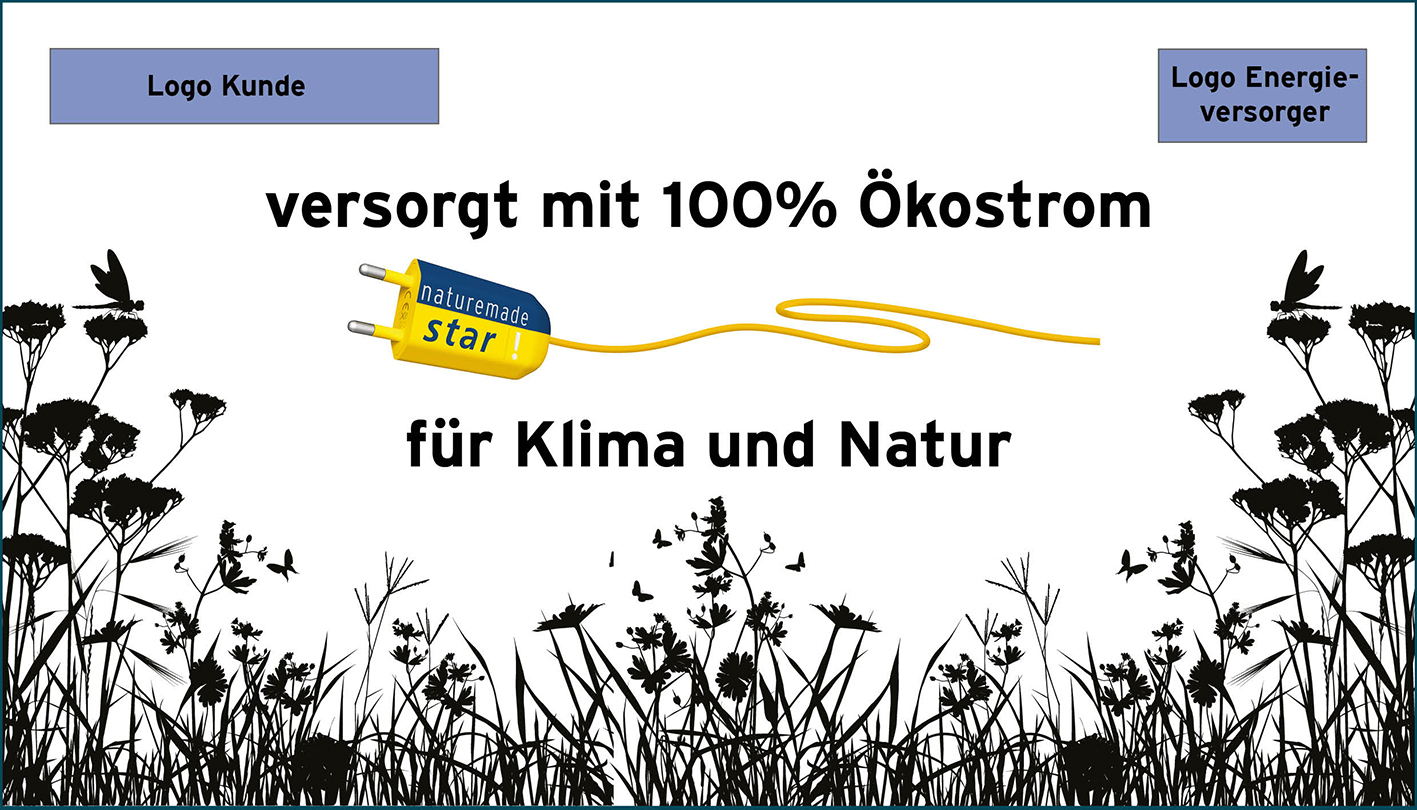 Tue Gutes und sprich darüber: Mit diesen Beschriftungen können Ihre naturemade KundInnen zeigen, dass sie auf erneuerbare und besonders umweltfreundliche Energie setzen. Eingesetzt werden können sie etwa an oder in Gebäuden bzw. auf E-Fahrzeugen, die mit naturemade Energie versorgt werden sowie an eigenen Produktionsanlagen. Alle Vorlagen – die Sie auch nach Bedarf anpassen können – stehen vorerst auf Deutsch auf unserem Downloadportal zur Verfügung. Bei Bedarf übersetzen wir Sie gern für Sie. Adresse und Passwort zum Download können Sie via Mail an communication@naturemade.ch anfordern.