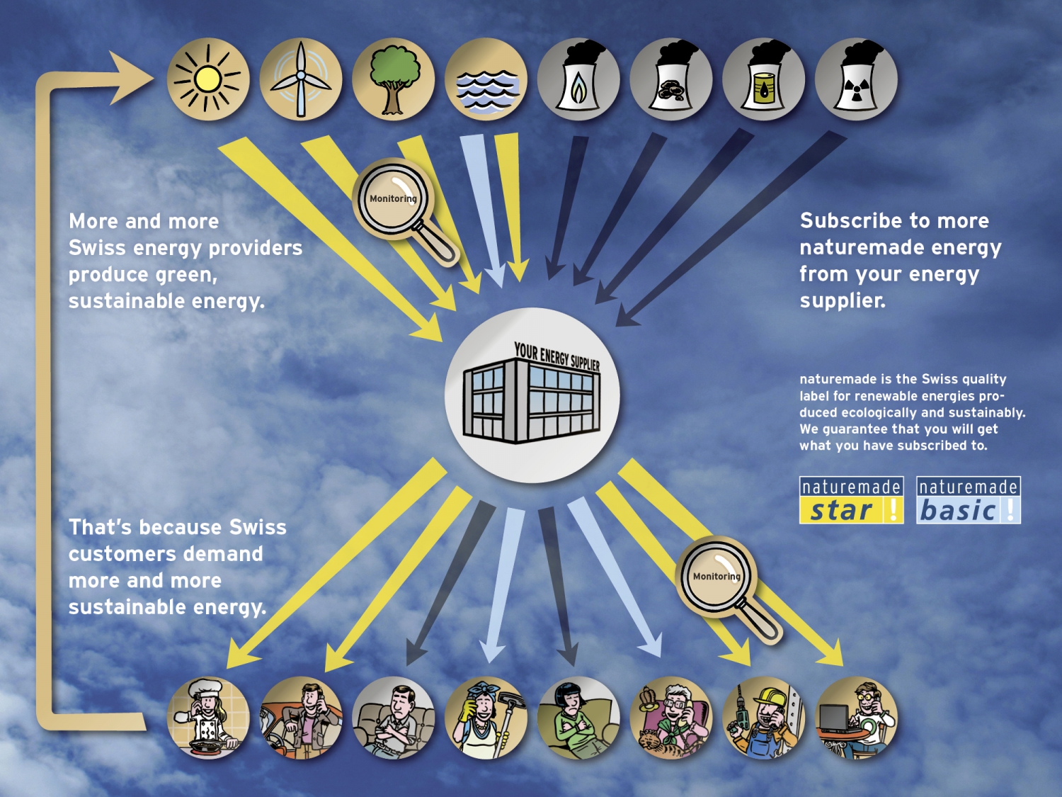 You decide whether the energy you consume is generated from nuclear power, fossil or renewable energies. By buying energy products bearing the naturemade quality label, you are making the right choice. We guarantee that you will receive the quality you have subscribed to – 100% renewable and, in case of naturemade star, even 100% green. You also support the construction of new wind, solar and biomass plants and the greening of existing plants.