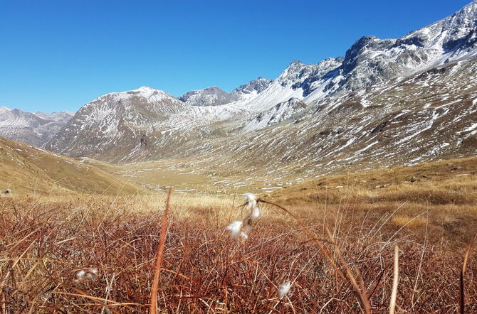 La palude bassa dell’Alp Tgavretga, a nord del passo del Settimo, versava in condizioni critiche da lungo tempo e correva il rischio di scomparire sempre più a causa di erosione e dilavamento. Grazie al fondo naturemade star di ewz ha potuto ora essere risanata: il terreno torboso di questa palude di importanza nazionale che era scivolato a valle è stato riportato in sede e piantumato a erba di cotone, le cui radici impediranno un nuovo slittamento.